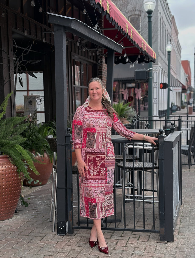 Our top-selling dress…..is a lightweight knit layering dress. Sports a round neck, 3/4 sleeves. It’s made fuller through the torso and tummy. The lower half of this dress tapers. This allows for a more slimming silhouette. Makes a very elegant layering dress. (It's not a bodycon) We've tried to leave ample room in the midsection. However, if you're gifted in the hip area, it may feel a bit snug. Just remember it’s a layering dress. So those snug areas will be covered!