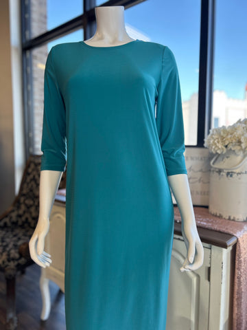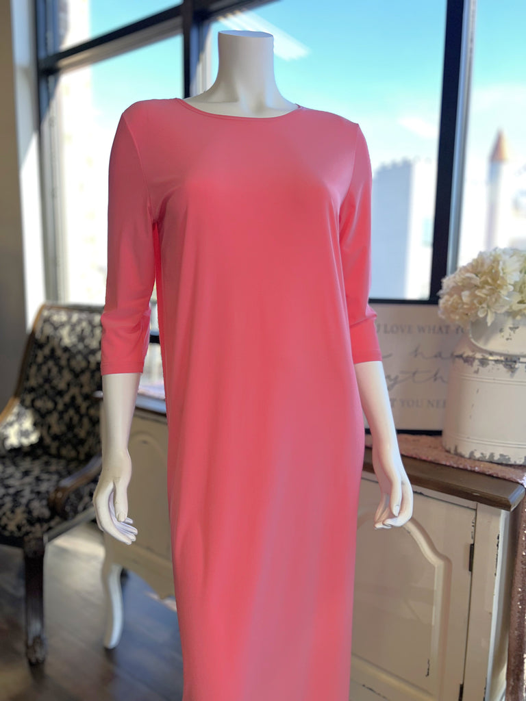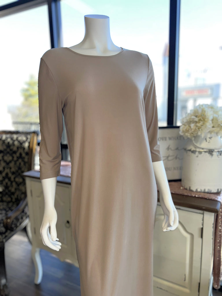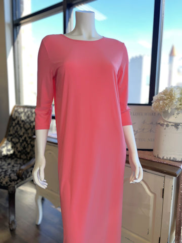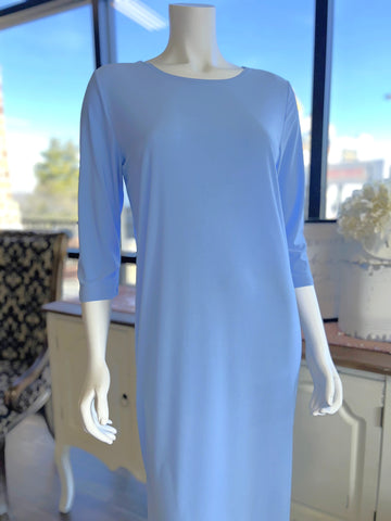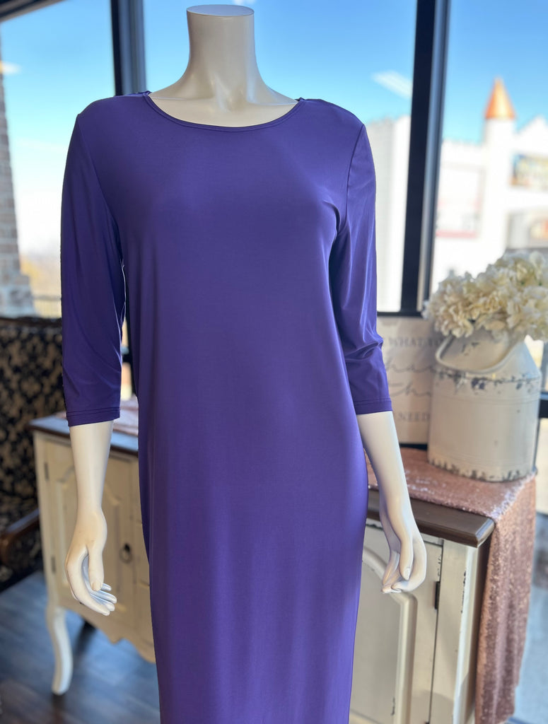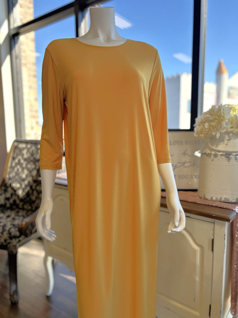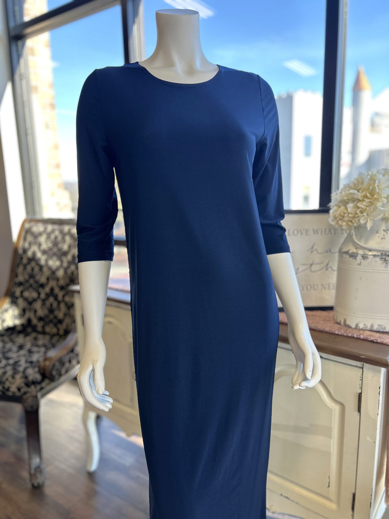 Our number one seller! Our lightweight knit dress has a round collar, 3 quarter sleeves. Ideal for ladies with a fuller bust and hip measurement. We've also tapered the lower half of the dress so that it does not flare out, but fits more, instead of a swing dress. It's not a bodycon. We've tried to leave ample room in the midsection. However, if you're gifted in the hip area, it may feel snug.