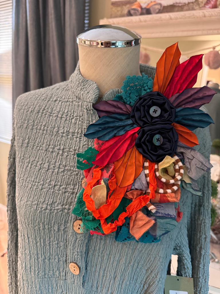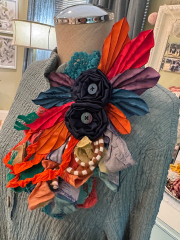 These beautiful vintage pins will add a touch of class to any outfit. They are handcrafted here in Mississippi by a local artist. They can be added to a belt or even a dressy handbag. They are unique in the fact, there are no two just alike. We may have similar colors, but never the exact same pins.